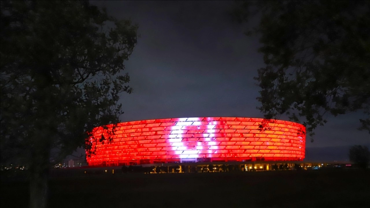 Gece boyunca Türk bayrağının ay yıldızlı silüeti, Haydar Aliyev Merkezi'nin kıvrımlı dış cephesine ve Olimpiyat Stadyumu'nun LED aydınlatmalarına yansıtıldı.