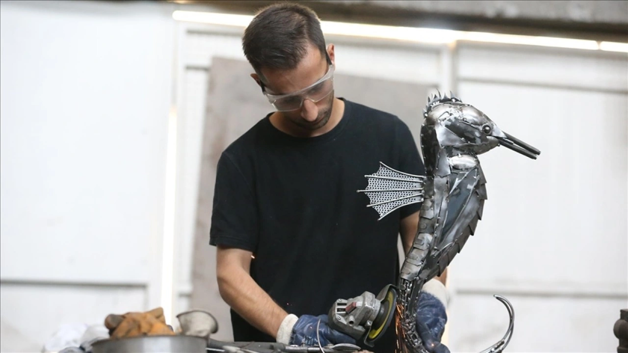 Mücahit Diyar Arız, hurda metallerden yaptığı eserlerinde sevdiği konuları çalışmayı tercih ettiğini söyledi.