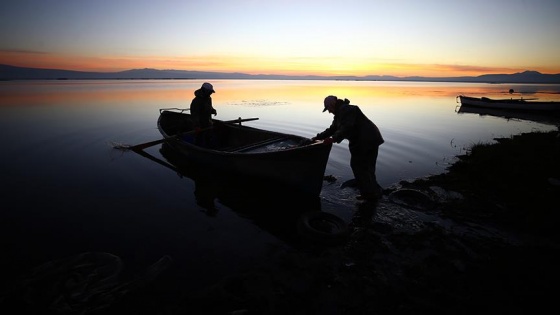 Konya'nın Seydişehir ilçesindeki Suğla Gölü'ndeki balıkçılar, gün ağarırken eşleriyle avlanmaya çıkıyor.