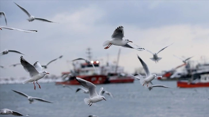 Balıkçı teknelerinin müdavimleri martılar bu nedenle 2 gündür yiyecek bulmakta zorlanıyor. Balıkçılarda balık veremedikleri martıları ekmekle besliyor.