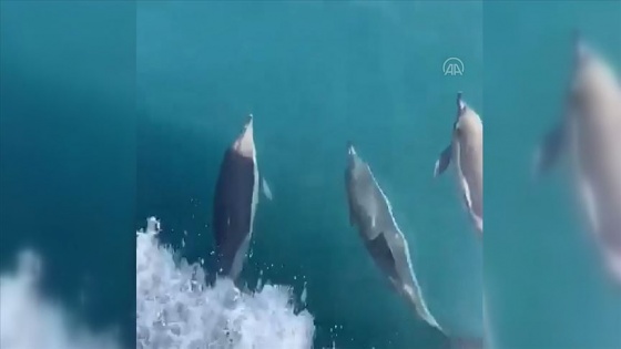 Bir süre su yüzeyinde ilerleyen yunuslar daha sonra gözden kayboldu.