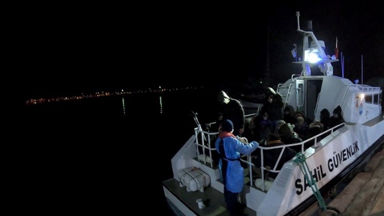 Midilli Adası'na gitmeye çalışırken Yunanistan sahil güvenlik unsurlarınca Türk kara sularına itildiği öğrenilen 34 sığınmacı, Cunda Adası'ndaki Sahil Güvenlik Komutanlığı Merkezine getirildi.