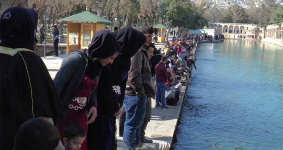 Şanlıurfa’da havaların ısınmasıyla birlikte yerli ve yabancı turistler önemli tarihi ve turistik mekanlardan biri olan Balıklıgöl’e akın etti. Yurdun birçok yerinden bölgeye gelen vatandaşlar aileleriyle birlikte hatıra fotoğrafları çektirerek yaşadıkları anı ölümsüzleştirdi.