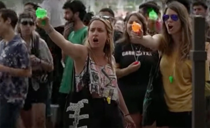 Barselona'da 6 Temmuz'da yapılan ve yaklaşık 3 bin kişinin katıldığı gösteri sırasında bazı vatandaşlar, ellerindeki küçük su tabancalarıyla restoranda oturan turistlere su sıkmıştı.