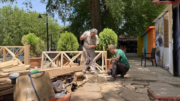 Sağanak nedeniyle derenin taşması sonucu sular altında kalan ve çeşitli imalat, atölye, üretim işletmelerinin bulunduğu Gecen köyü mevkisindeki yaklaşık 200 iş yerinin bulunduğu Atılım Sanayi Sitesi'nde iş yeri sahipleri ile çalışanlar temizlik yaptı.
