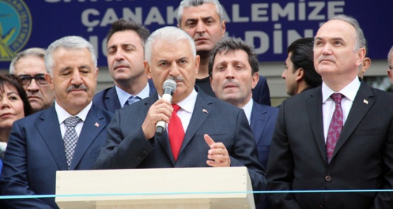 Cumhurbaşkanı Erdoğan’ın liderliğinde 15 yılda 1 Türkiye’yi, 3 Türkiye’ye çıkardıklarını ifade eden Yıldırım, “3 kat büyüttük. Çanakkale’de bir başka büyük projenin adımını attık. 18 Mart’ta muhteşem katılımla, 30 binin üzerinde Çanakkalelilerle tören yaptık. 2023 metre açıklığında, dünyanın iki kule arasındaki en fazla açıklık bulunan köprüsünün temelini attık. 2023’e gelmeden köprü ve 90 kilometre yolla beraber açmış olacağız. Çanakkale gece, gündüz her havada geçilecek. 2002’de Çanakkale’de 21 kilometre bölünmüş yol vardı. Şimdi 320 kilometreye çıkmış. Çanakkale demek Türkiye demek. 15 yılda hükümetlerimiz döneminde Çanakkale’ye yaptığımız yatırım 17 milyar lira. Türkiye aynı anda 3 terör örgütü ile mücadele eden tek ülke. 15 Temmuz alçak darbe girişiminin arkasında olan FETÖ terör örgütü, 15 Temmuz’dan sonra açığa çıkmış, 250 şehidimiz olan adeta bir savaş sonucu demokrasimizi kazandığımız bir sürecin arkasından, hukuk içerisinde alçak örgütle mücadele devam etmektedir. Mahkemelerde tiyatro oynasalar da terörist başının gönderdiği rüya tabirlerine göre rollerini oynasalar da faydası yok. Hak ettikleri en ağır cezayı alacaklardır. Şehitlerimizin kanı yerde kalmayacaktır. Burası onların üstlendiği önemli merkezlerden biriydi. Burada bu mikrop temizlenme noktasına gelmiş. Üniversiteler, bir ülkenin gelişmesi için vazgeçilmez kurumlardır. Vazgeçilmezliği, küresel, büyük düşünmekten geliyor. Geniş vizyon içerisinde öğrenme, muhakeme kabiliyetinin gelişmesi, özgüvenin gelişmesi, üniversitenin vermesi gereken en önemli şey budur. Ne kadar sorunları analitik düşünebiliyorsanız eğer FETÖ gibi, marjinal gibi örgütlerin bölücü faaliyetlerin etkisinde kalmıyorsanız üniversite size hak ettiğiniz bilgiyi veriyordur. Diploması olmayan bir adamın etrafında üniversite okumuş, profesör olmuş adamlar etrafında geziyor. Allah akıl, fikir vermiş. Allah bize engin bir muhakeme faaliyeti vermiş. İnancımız var ama bunun istismar edilmesine, kullanılmasına, kötü niyetlerine örgütlere değerlerimizi satmayacağız. Sahip olduğumuz değerler bize yeter” şeklinde konuştu.