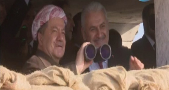 Başbakan Yıldırım, resmi ziyaret düzenlediği Irak’ta temaslarına devam ediyor. Bağdat’taki temaslarını tamamlayarak Erbil’e geçen Başbakan Yıldırım, buradaki temasları kapsamında önce Irak Kürt Bölgesel Yönetimi Başbakanı Neçirvan Barzani, ardından da Irak Kürt Bölgesel Yönetimi Başkanı Mesud Barzani ile görüştü. Yıldırım, Mesud Barzani ile gerçekleştirdiği basın toplantısının ardından Erbil-Musul cephe hattında bulunan Zertek Dağı’na gitti. Terör örgütü DEAŞ'a karşı mücadele veren Permerge güçlerinin bulunduğu cepheyi ziyaret eden Başbakan Yıldırım, incelemelerde bulunduğu Zertek Dağı’nda yetkililerden bilgi aldı. Bölgede bulunan çadır içinde operasyon ile ilgili bilgi verilen Yıldırım’a, Mesud Barzani eşlik etti.