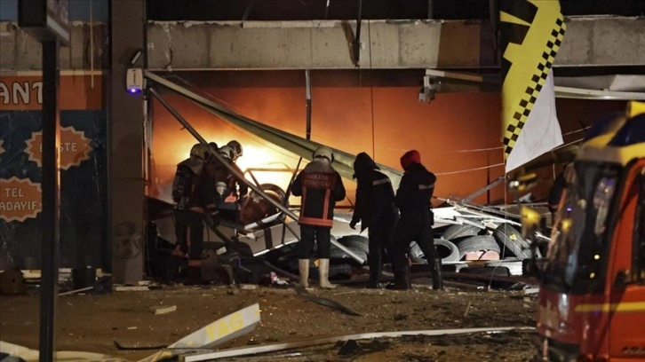 Duvarları yıkılan binanın kepenkleri metrelerce uzağa savrulurken, bitişiğindeki oto yıkama ve unlu mamuller satılan iş yerlerinde de hasar oluştu. Patlamanın ardından çıkan yangında alevler yan taraftaki dükkanlara sıçradı.