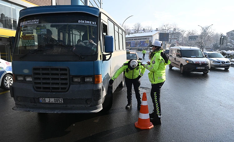 Ankara Emniyet Müdürlüğü trafik ekipleri, Dikimevi Kavşağı'nda, her yıl 1 Aralık'ta başlayan ve 1 Nisan'da sona eren zorunlu kış lastiği uygulamasına yönelik denetim yaptı.