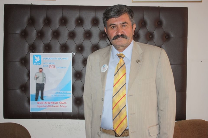 Demokratik Sol Parti (DSP) Isparta Milletvekili Adayı Mustafa Nihat Önal, elinde rakı kadehiyle çektirdiği fotoğrafını, seçim afişi ve kartvizitinde kullanırken aynı afiş üzerinde Alevilik vurgusunu da ihmal etmedi.