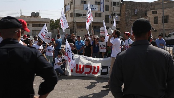 Yahudi yerleşimcilerin bir kaç ay önce el koyduğu evin önünde toplanan göstericiler, söz konusu evin en kısa sürede boşaltılmasını ve gerçek sahiplerine iade edilmesini istedi.
