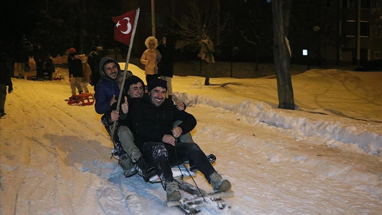 Soğuk havaya aldırış etmeden müzik eşliğinde kızakla kayan aileler ile çocukları doyasıya eğlendi.
