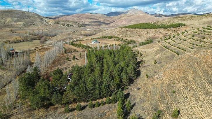 Daha sonra evinin de içinde bulunduğu yaklaşık 60 dönümlük araziyi ağaçlandırmaya başlayan Özkan, 1700 rakımdaki köyün kurak iklimi ve soğuk havasına rağmen 49 yılda diktiği 3 bin fidanı büyütmeyi başardı.