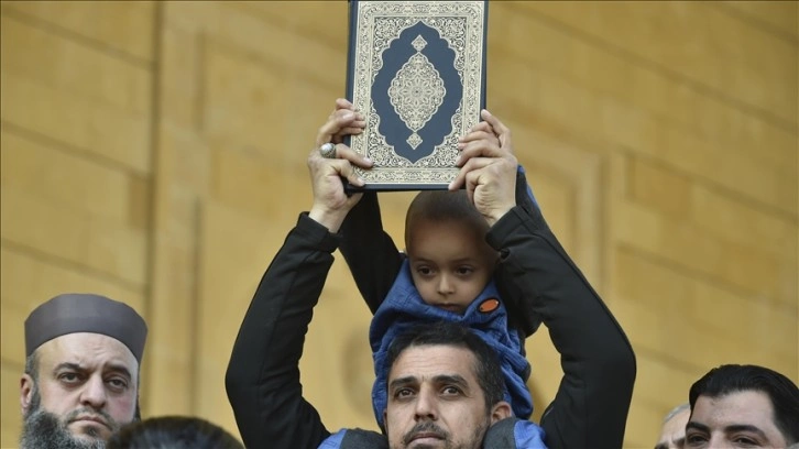 Göstericiler, Beyrut’un merkezindeki Muhammed Emin Camisi önünde bir araya gelerek Kur’an-ı Kerim’e yönelik çirkin hakarete tepki gösterdi.