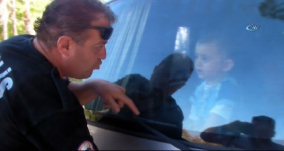 Çocuğun mahsur kaldığının ihbar edilmesi üzerine olay yerine gelen polis ekipleri, 30 dakika boyunca minibüsü açmaya çalıştı.