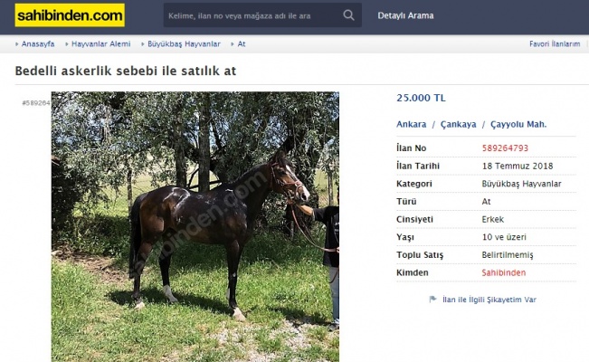 İSTANBUL (AA) - Bedelli askerlik parasını karşılamak isteyen bir vatandaş binek atını 25 bin liraya sahibinden.com'da satışa çıkardı.