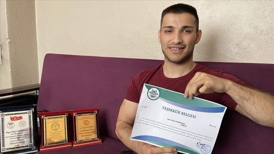 Edirne'de düzenlenen bilek güreşi yarışmasında "yılın en iyi sporcusu", fizik tedavi merkezinden "başarı ödülü", Elazığ'daki depremzedelere yardım çalışmalarında yer aldığı için de Edirne Valisi Ekrem Canalp'ten "teşekkür belgesi" aldığını aktaran Kahraman, birçok sosyal çalışma içerisinde de aktif olarak yer aldığını söyledi.
