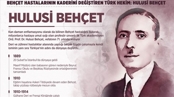 Kan damarı enflamasyonu olarak da bilinen, kronik vasküler-enflamatuar multisistemik bir hastalık olan Behçet'i bularak, milyonlarca hastaya umut ışığı olan profesör unvanlı ilk Türk akademisyen Ord. Prof. Dr. Hulusi Behçet, vefatının 71. yılında anılıyor.