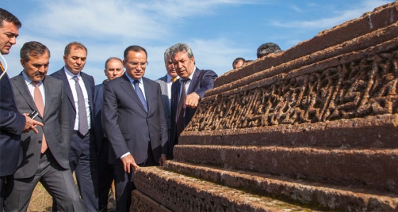 Çeşitli açılış ve ziyaretlerde bulunmak üzere Bitlis’e gelen Adalet Bakanı Bekir Bozdağ, Ahlat ilçesinde tarihi yerleri gezdi. Anadolu'nun Orhun Abideleri olarak da nitelendirilen Selçuklu Meydan Mezarlığı'nda gezi ve incelemelerde bulunan Bakan Bozdağ, burada basın mensuplarına açıklama yaptı. Bakan Bozdağ, dünyanın en büyük İslam Mezarlığı'nda Türkiye üzerinde hesabı olanlara seslenerek, "Türkiye'nin tapusu Ahlat'tır. Anadolu'nun tapusu Ahlat'tır. Bin yıllık tarih buradadır. Türkiye üzerinde hesabı, kitabı olanlar bilsinler ki; bu milletin, bu devletin, böylesi tarihi tapuları olduktan sonra Anadolu üzerinde hiç kimsenin hesap yapmaması lazımdır. Bu bizim gücümüzün de kaynağıdır. Medeniyetimizin, kültürümüzün de kaynağıdır. Türk tarihi, Türk kültürü, aynı zamanda İslam tarihi ve kültürü bakımından da son derece önemli bir şehrimiz olan Kubbetül İslam olarak anılan Ahlat'tayız. Ahlat'ta şu anda dünyanın en büyük anıt mezarlığı bulunmaktadır. İslam tarihinin en büyük anıt mezarlığı buradadır. Belediye başkanımız, kaymakamımız, valimiz, üniversiteden hocalarımız, tarihimiz ve kültürümüz bakımından son derce önemli olan büyük Selçuklu Mezarlığı'nı bizlere gezdirdiler. Burada ecdadımızı ve onların geride bıraktıkları eserleri görme imkanı bulduk. Bir kez daha Anadolu’yu bize yurt bırakan, Anadolu'nun kapılarını açan ecdadımıza Allah'tan rahmet diliyorum. Mekanları cennet olsun. Çanakkale Türkiye'yi ne kadar etkilemişse Ahlat'ta bir o kadar belki daha da fazla etkilemiştir. Çünkü Anadolu'nun kapılarını açan bütün hareketler Ahlat'tan başlamıştır. Anadolu'nun Müslümanlaşması, Türkleşmesi, Balkanlara, Avrupa'ya İslam'ın Anadolu üzerinden yürüyüşü de Ahlat'tan başlamıştır. Ahlat'ı görünce bin yıllık bir tarihi burada kısa sürede görme imkanımız oldu. Ben bu yüzden Ahlat Belediye Başkanımıza, Ahlat Kaymakamımıza, Bitlis Valimize de burada ki ecdat yadigarı bu eserlere sahip çıktıkları ve hizmet ettikleri için teşekkür ediyorum. Burada kazı çalışmaları yapan ve bu eserlerin ortaya çıkmasına katkı sunan hocalarımıza ayrıca teşekkür ediyorum. Kültür Bakanlığımız ve hükümetimiz bundan sonra ki süreçte milletimizin, devletimizin, vatanımızın, kültürümüzün, medeniyetimizin merkezi olan, tapusu olan Ahlat'a ve bu ecdat yadigarı eserlere sahip çıkmaya devam edeceğiz. Önümüzde ki zaman içerisinde burada daha önemli adımlar atacağımızı da sizin aracılığınızla ifade etmek isterim" dedi.