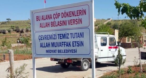 Midyat Belediyesi, Acırlı Mahallesi karşısında bulunan mesire alanı ve Şeyh Eles Türbesi’nin bulunduğu alana, üzerinde dua ve beddua içerikli yazıların olduğu tabela koydu. “Bu alana çöp dökenlerin Allah belasını versin” ve “Çevremizi temiz tutanı Allah muvaffak etsin” yazılı tabelalar, mesire alanının çeşitli yerlerine yerleştirildi. Bazı vatandaşlar tabelalara olumsuz tepki gösterirken, bazıları ise uyarıları yerinde buldu.