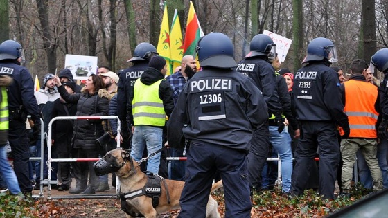 Almanya'nın başkenti Berlin'de Türkiye Büyükelçiliği önünde gösteri bahanesiyle toplanan terör örgütü PYD/PKK yandaşlarına polis müdahalede bulundu.