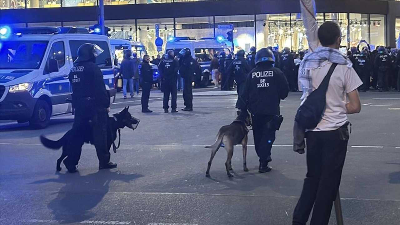 Eylemde kurallara uyulmadığını ve gösterinin kamu güvenliğine zarar vereceğini savunan polis, Joachimsthaler Caddesi’nde anons yaparak gösterinin sonlandırılmasını ve protestocuların bölgeden ayrılmasını istedi.