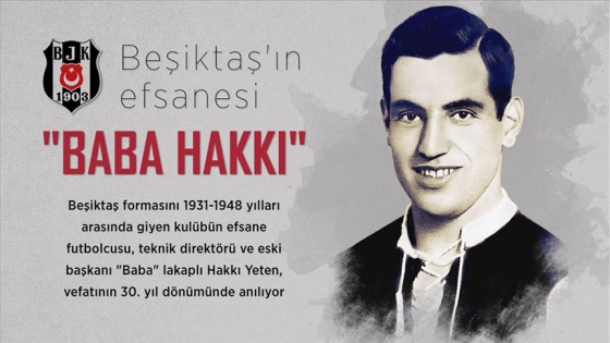 Beşiktaş'ın efsane futbolcusu, teknik direktörü ve eski başkanı "Baba" lakaplı Hakkı Yeten, vefatının 30. yıl dönümünde anılıyor.