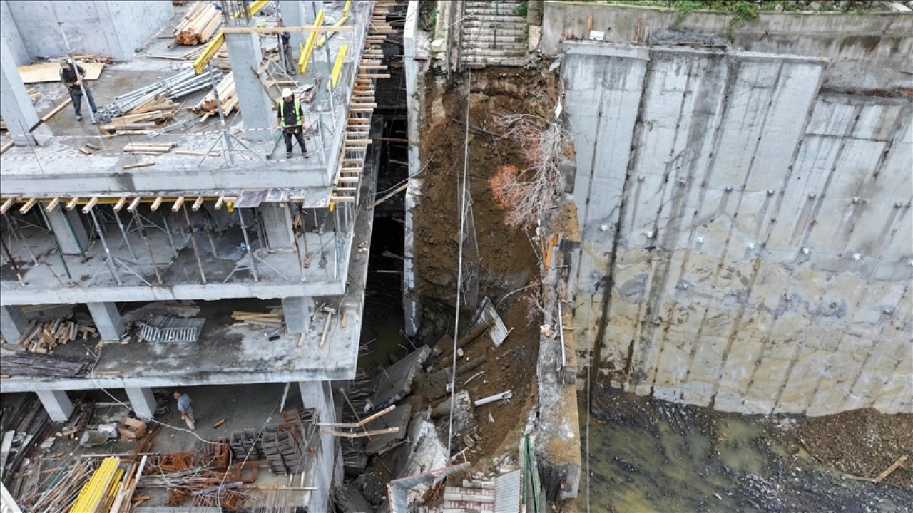 Çökmenin ardından merdivenden kopan moloz parçaları, inşası süren binanın istinat duvarının yıkılmasına sebep oldu.
