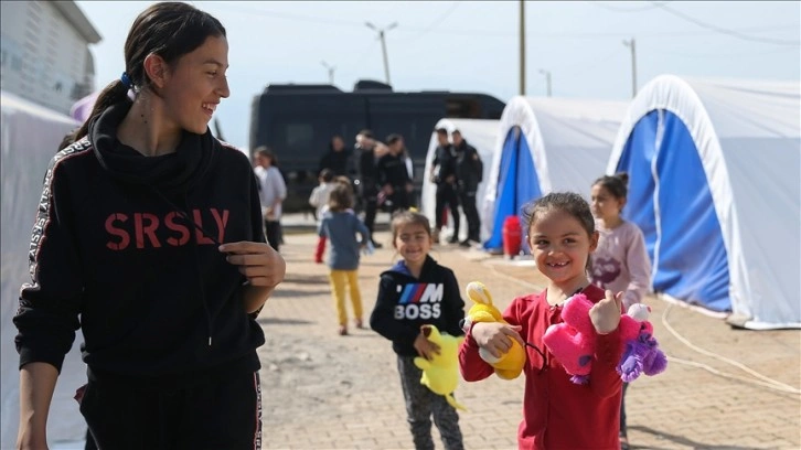Beşiktaş Kulübü yöneticisi Fırat Fidan'ın eşi Gizem Fidan da dağıtımın yapıldığı alanın arkasındaki çadırda kalan ve depremde ayağı kırılan bir çocuğa oyuncak hediye etti.