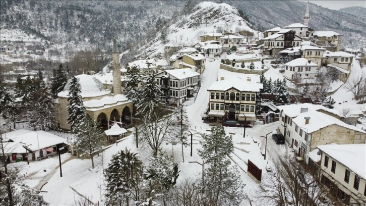 Sakarya'nın Sakin Şehirler Ağı'na (Cittaslow) üye Taraklı ilçesindeki tarihi konaklar, karla bir başka güzelliğe büründü.