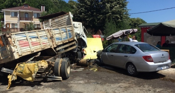 Kazayı gören bir vatandaş, "Rampadan indiği sırada bir anda kontrolünü kaybedip araca çarptı. Burada böyle kazalar çok oluyor. Etrafta bir sürü çay bahçesi var. Kamyon şoförü yaralandı" dedi.