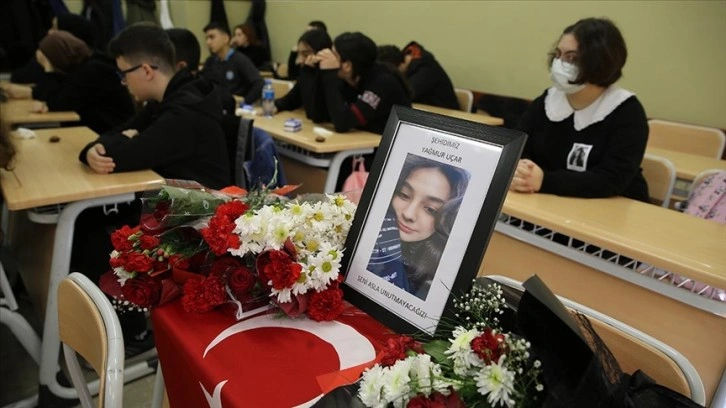 Yağmur Uçar'ın eğitim gördüğü 10/A sınıfında da hüzünlü anlar yaşandı. Sınıf arkadaşları Yağmur'un fotoğrafını yakalarına takarak ders başı yaptı. Yağmur'un sırasına üzerinde, "Asla unutmayacağız" yazılı fotoğrafının yanı sıra Türk bayrağı ve çiçek bırakıldı.