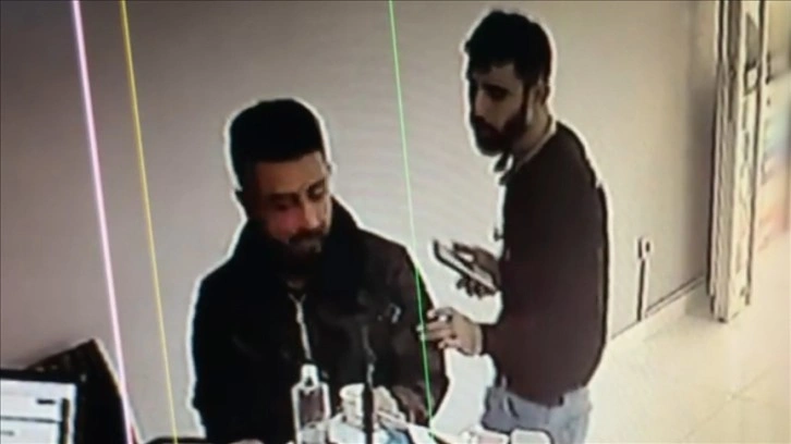 Görüntülerde iş yerinin kasa kısmında duran "Hüsam" kod adlı şüphelinin, firari Hassan'ı dışarı çağırdığı anlar yer alıyor.