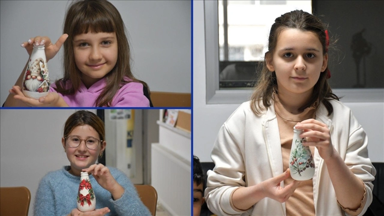 Edebali Ortaokulu 5. sınıf öğrencisi Kardelen Kayacık ise cam şişe ve boş tenekeleri boyayıp geri dönüşüme kazandırdıklarını anlatarak, "Atılacak eşyaları değerlendirdik. Para harcamadan, el emeğiyle yaptığım ürünleri evimde sergiliyor, aileme ve arkadaşlarıma hediye ediyorum." diye konuştu.