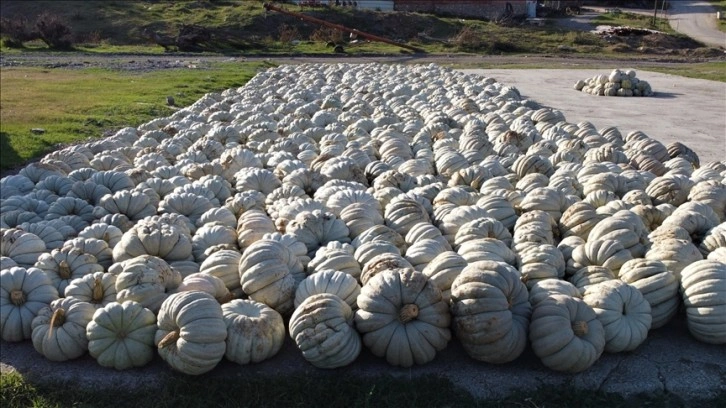 Üreticiler, Türkiye'nin birçok iline gönderilen, lezzeti ve kalitesiyle ülke genelindeki tüccardan talep gören kestane kabağını hasat etmek için sabahın ilk ışıklarında tarlalarına gidiyor. 360 rakımlı köyde dekar başına 2-3 ton verim alınabiliyor.