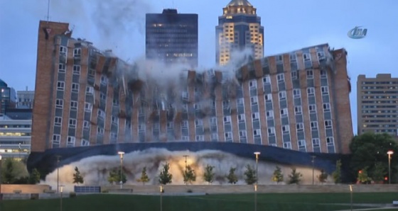 ABD’nin Iowa eyaletinin başkenti Des Moines’de bir binanın patlatılarak yıkılacağını duyan halk yıkım ekibi tarafından hazırlanan bir sürprizle karşılaştı.