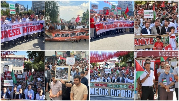 Ağrı'da sivil toplum kuruluşu temsilcileri ve vatandaşlar, Hamas Siyasi Büro Başkanı İsmail Heniyye'nin İran'da suikasta uğraması ve İsrail'in Gazze'ye yönelik saldırılarını protesto edildi.