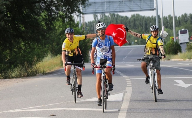 IĞDIR (AA) - Bülent Mavzer - Türkiye'nin her yerinin güven içinde özgürce dolaşılabileceğini göstermek ve 81 ilin güzelliklerini keşfetmek amacıyla 23 gün önce bisikletle İzmir'den yola çıkan Ahmet Süğlün, Iğdır'da dağcılar ve bisiklet tutkunlarınca karşılandı.