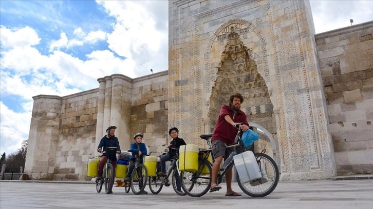 Tarihi dokusu ve mimarisiyle cazibe merkezi haline gelen Sultanhanı Kervansarayı'nı gezen aile, Kapadokya'ya gitmek üzere pedal çevirdi.