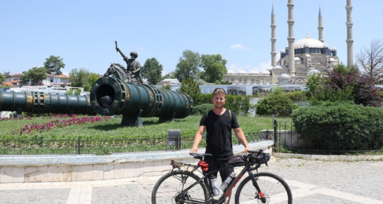 8 gün önce tek başına bisikleti ve sırt çantası ile yola çıkan genç seyyah, sekizinci günün sonunda Edirne'ye ulaştı.