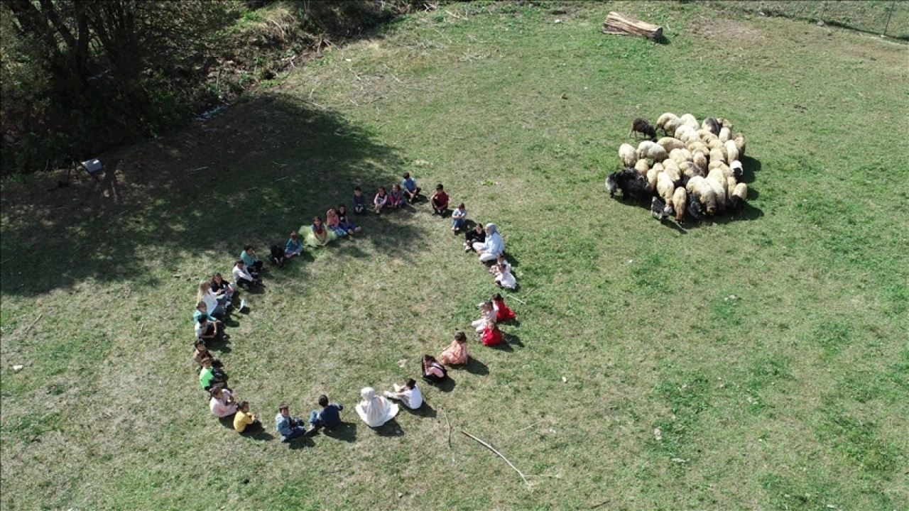 Açık alanda kitap okuduklarını, resim yaptıklarını, etkinlikler düzenlediklerini anlatan Gencer, "Şu anda ders işlediğimiz ortamda koyunlar, keçiler ve kediler var. Doğayla iç içe bir ortamdayız. Bundan hem çocuklar hem de biz çok memnunuz. Eğitim faaliyetlerimiz güzel şekilde ilerliyor. İşlediğimiz konuların tekrarını yapıyor, soruları yanıtlıyoruz." ifadelerini kullandı.