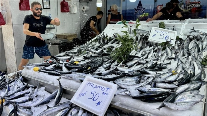 Ağlara takılan tonlarca palamut, tezgahlarda tanesi 40 ila 50 lira arasında değişen fiyatlarla alıcılarla buluşturuluyor.