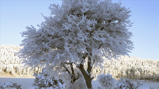 Bolu'nun doğal güzellikleriyle ünlü Abant Tabiat Parkı'ndaki gölün yüzeyini buz kapladı.