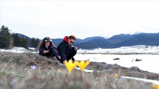 Bolu'ya yaklaşık 30 kilometre uzaklıkta Köroğlu Dağları'nın eteklerinde yer alan Sarıalan Yaylası'nda havaların ısınmasıyla karlar erimeye başladı.