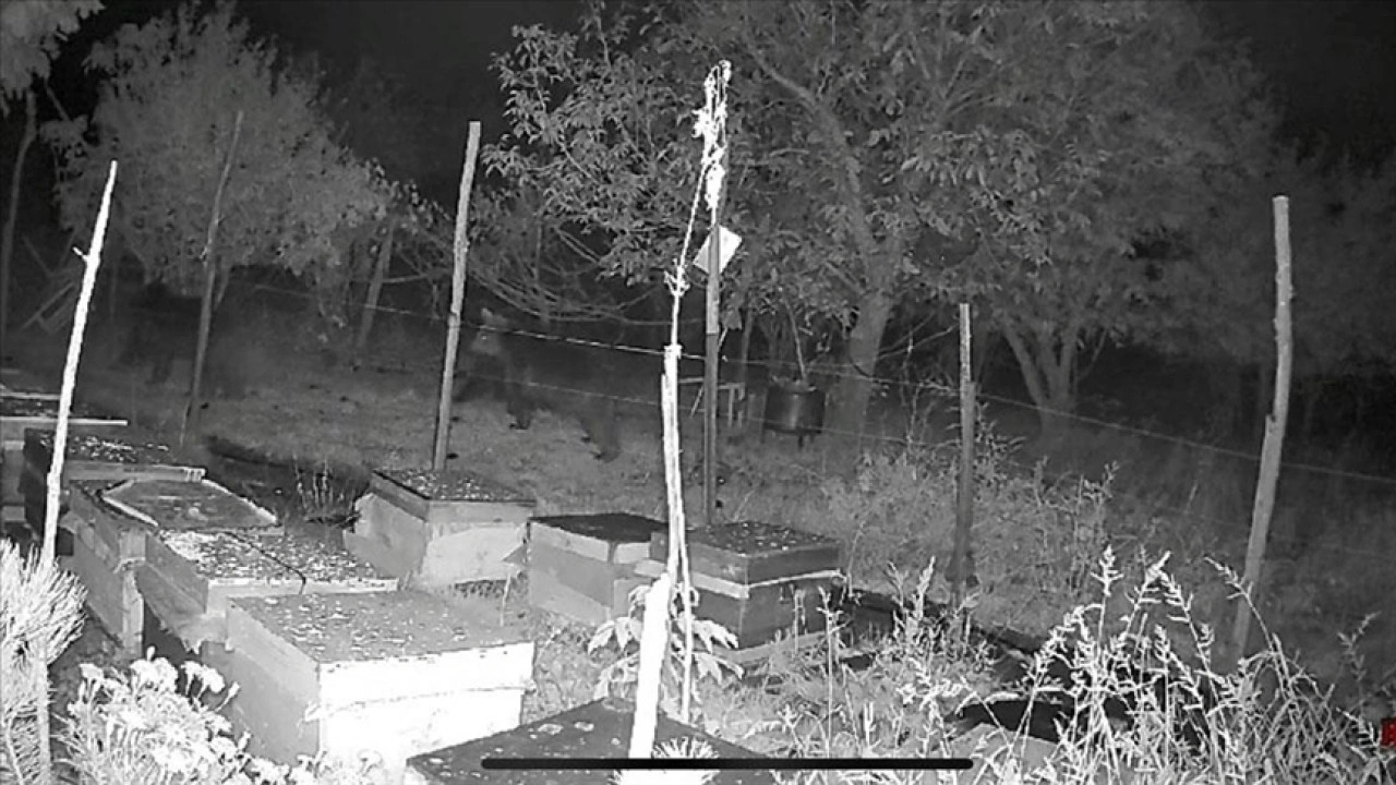 Deveören köyü Çaral Mahallesi'nde arıcılık yapan Erhamin Koç'un arı kovanlarının bulunduğu alana gece saatlerinde 3 ayı geldi. Ayılar, kovanların bulunduğu alana elektrikli teller nedeniyle ulaşamadı. Kovanların etrafında dolaşan ayılar, daha sonra alandan uzaklaştı.