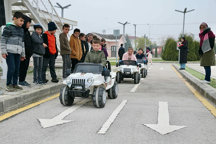 Eğitici video ve animasyonların ardından parkurdaki akülü araçlar ile bisikletlere binen öğrenciler, minyatür şehrin canlandırıldığı parkta trafik polisleri eşliğinde öğrendiklerini pekiştirme imkanı buluyor.