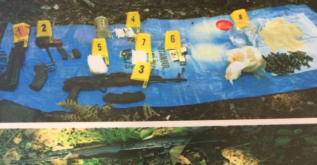 Açıklamada, çalışmanın devamında SD karttan elde edilen bilgiler üzerinden 15 Haziran’da ormanlık alanda yapılan kazı sonucunda ; “2 adet Kaleşnikof marka uzun namlulu silah, 2 adet Kaleşnikof silaha ait şarjör, bir adet Uzi marka makinalı tabanca, 2 adet Uzi marka tabancaya ait şarjör, çok sayıda mermi, 3 adet elektrikli fünye, bir adet bomba düzeneğinde kullanılmak üzere hazırlanmış cep telefonu, bir adet bomba düzeneğinde kullanılmak üzere hazırlanmış saatli zaman ayarlayıcı, bir adet uzaktan kumanda, 2 adet bomba düzeneği hazırlamak için gerekli olan klavuz not toplu halde gömülü olarak ele geçirildiği” bildirildi.