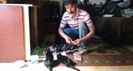 Bu şartlar altında köpeklere, kedilere bakmaya devam ediyorum” dedi. Herhangi bir yerde çalışmadığını, işsiz olduğunu söyleyen Yalçın, “Sosyal yardımlaşmadan da hiçbir şey almıyorum, vermiyorlar. Onlara da ‘yazıklar olsun’ diyorum. Bisikletim dahi yok benim. Sigorta yok, maaş yok. Zor şartlarda geçiniyorum.