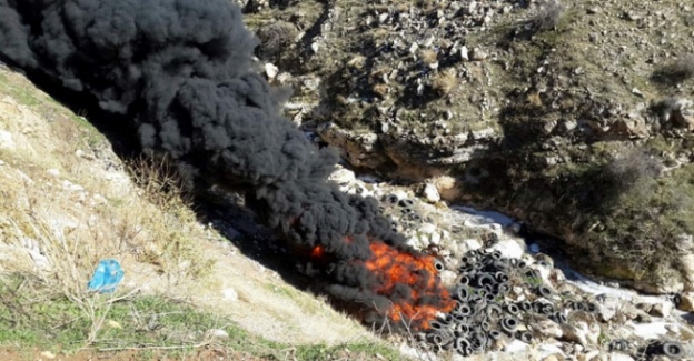 Botan Çayının hemen yanı başında yüzlerce lastik yakıldı. Bölgede olan kirliliğe, çevreciler tepki gösterdi.