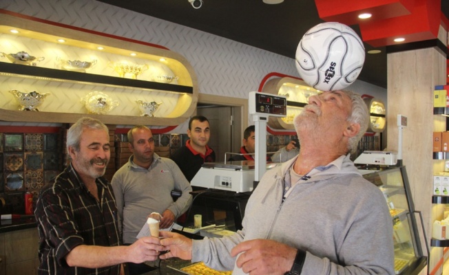 Adana’da birçok takımda forma giyen 67 yaşındaki Zeki Zevker, yaşı ilerlemesine rağmen çok sevdiği futboldan kopamıyor. Her yere kafasındaki futbol topuyla giden, başında topla dondurma bile yiyen Zevker, küçükken de topla uyduğunu söyledi.